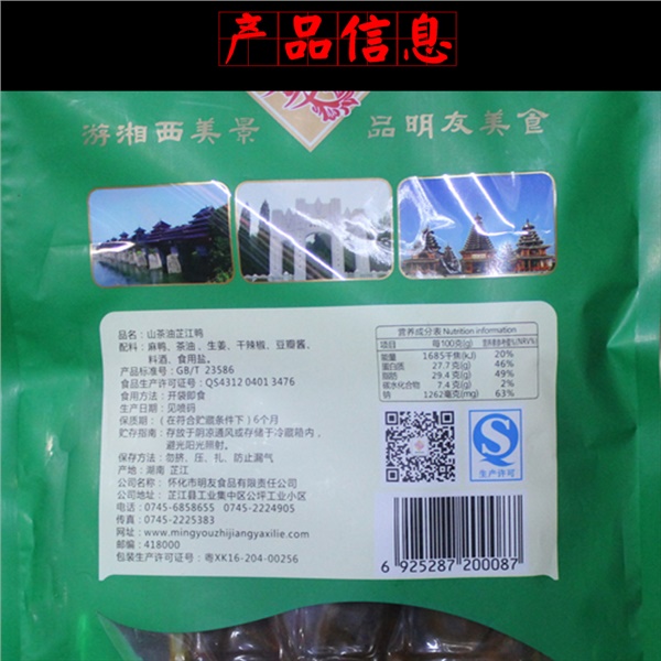 山茶油芷江鸭:明友山茶油炒鸭真空装舌尖美食